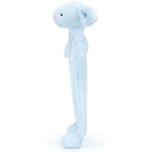 Irresistibly soft in a baby blue coloured fur made from recycled fibres, Bashful Bunny Comforter features our beloved Bashful Bunny signature long lop ears, a pink suedette nose and embroidered eyes. Designed with an un-stuffed body yet delicately squashy paws and bobble feet, making it easy for little hands to grab ho