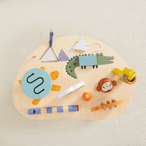 Get your little musician composing early with our Mini Music Maker.  Our pint sized orchestra can be played on the floor or at the table, and includes giraffe rattle, hippo tambourine, snake whistle, elephant bead shaker, alligator ribbed xylophone, turtle drum, monkey castinet, and mountain triangle.  Let’s make some