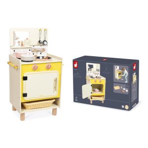 On the menu today: grilled seasonal vegetables and homemade cake! With their wooden kitchen, children from the age of 3 can imagine crazy recipes at the stove and imitate the grown-ups. Equipped like the real thing and with 11 accessories, this toy kitchen is perfect for playing dinette and inventing all kinds of stori