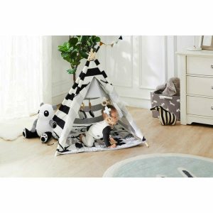 What could be better than a toy that grows with your baby? This convertible Baby Activity Teepees do just that. They start as a play mat for the tiniest of babies on their backs, and when they learn to roll over, they are enchanted by the graphics of the play mat. Then add the cover…