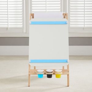 Unlock the potential of young artists with the Discovery™ 2-In-1 Easel Wood Art Center, a versatile and engaging art station that features both a whiteboard and chalkboard. This easel features an easy DIY assembly and adjustable angle for comfortable use on tabletops or floors. The integrated storage tray ensures that