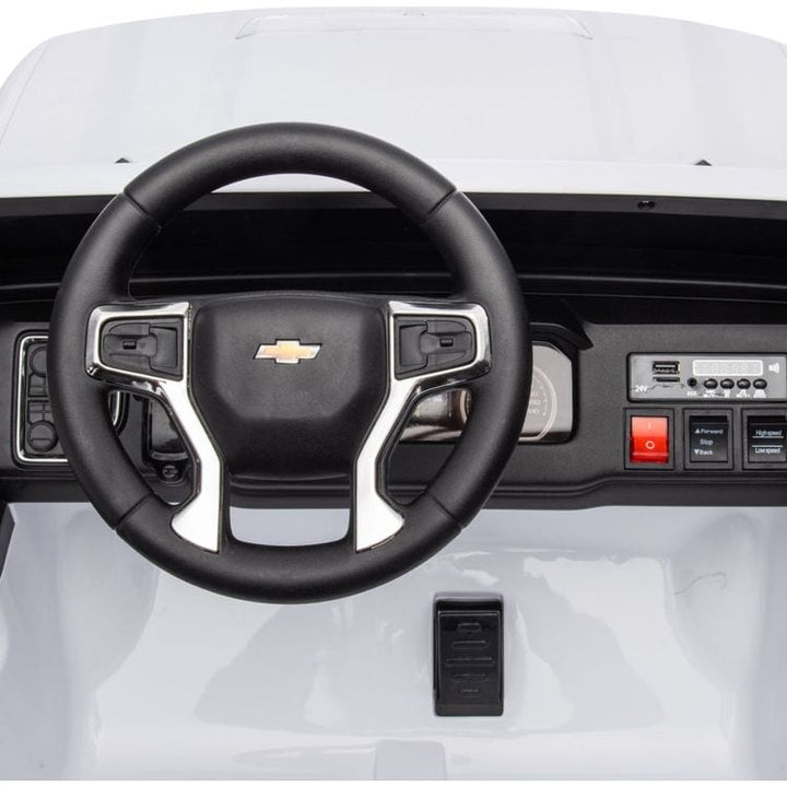 24V 4×4 Chevrolet Silverado 2 Seater Ride on Truck for Kids – White