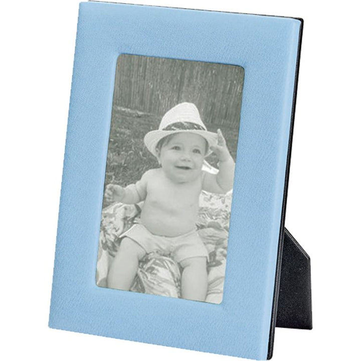 This rich leather frame beautifully accents your favorite photo. Handcrafted frames, wrapped in leather on both sides, with a sturdy metal easel. Convenient rear drop-down door for easy and frequent access to photos. Overall Size: 6" x 8" Opening: 4" x 6" full-grain leather