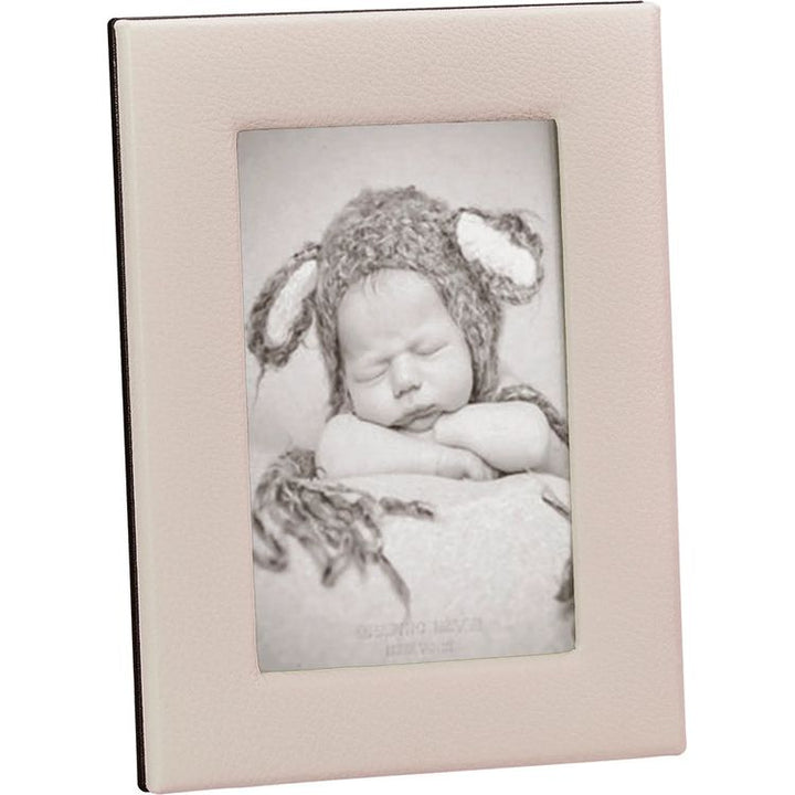This rich leather frame beautifully accents your favorite photo. Handcrafted frames, wrapped in leather on both sides, with a sturdy metal easel. Convenient rear drop-down door for easy and frequent access to photos. Overall Size: 6" x 8" Opening: 4" x 6" full-grain leather