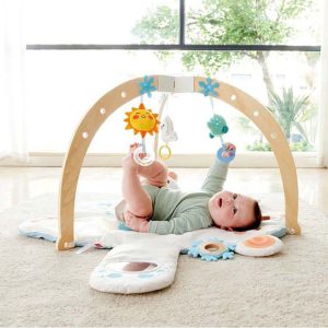 Practise those first steps with this traditional baby walker. 29 coloured wooden blocks to arrange in the tray and to build lots of shapes with. Sturdily built. MODERN TODDLER WALKER & CART SET – Is the perfect walker for your busy toddlers and comes with an assortment of beautiful garden themed wooden blocks in va