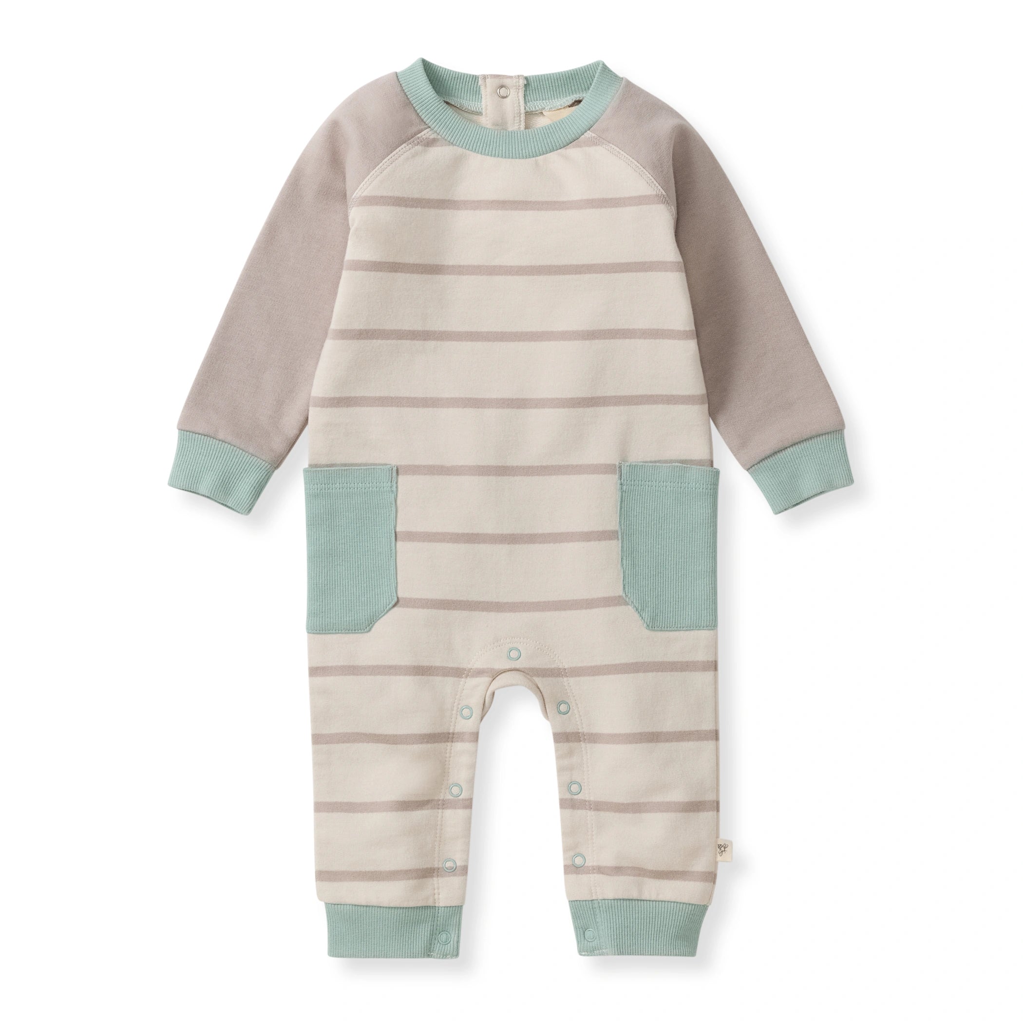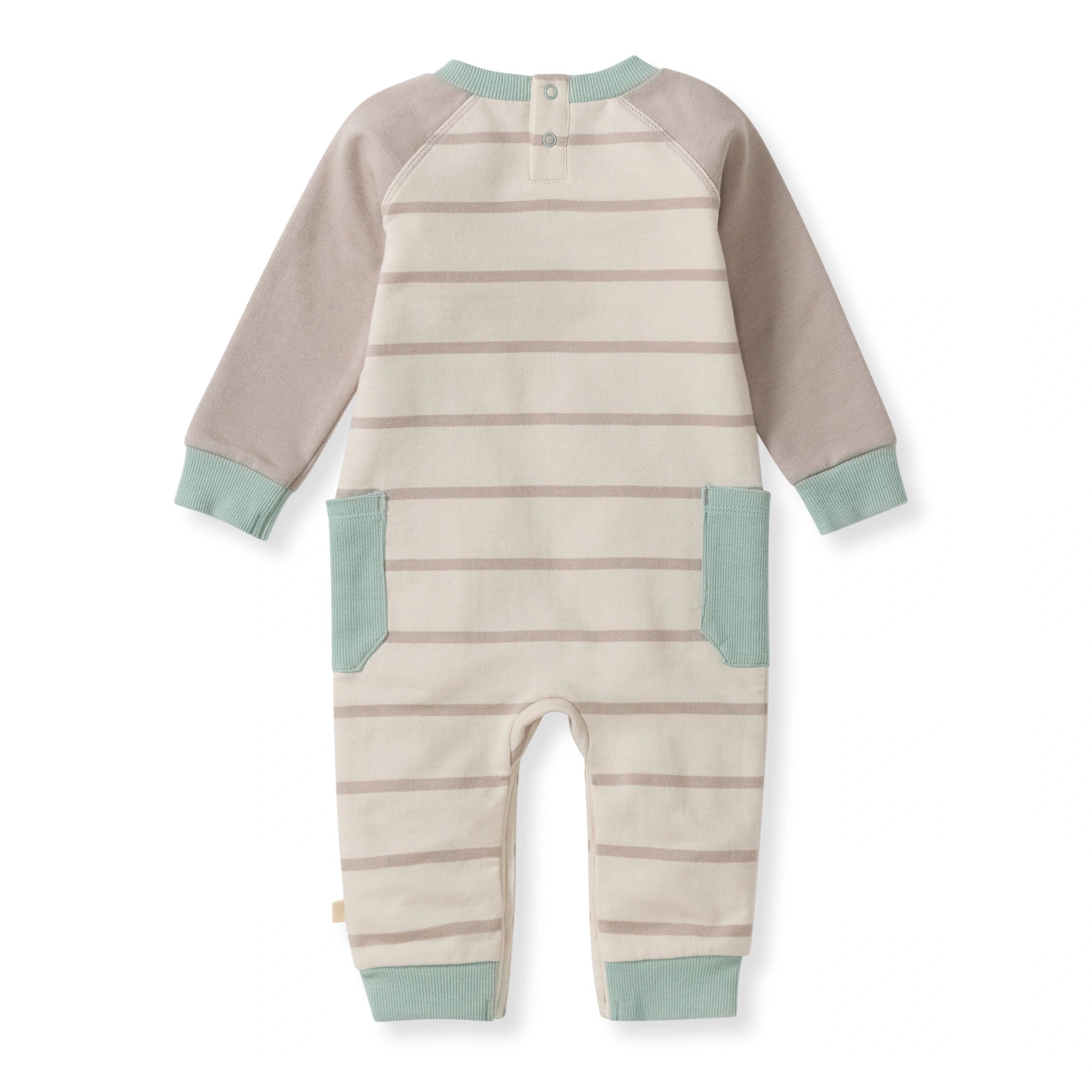 Your little one will stay comfy and cool in this striped jumpsuit featuring color-block sleeves and patch pockets — made for playtime. adventure. and everyday cuddles.