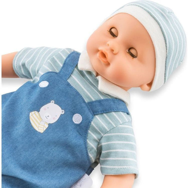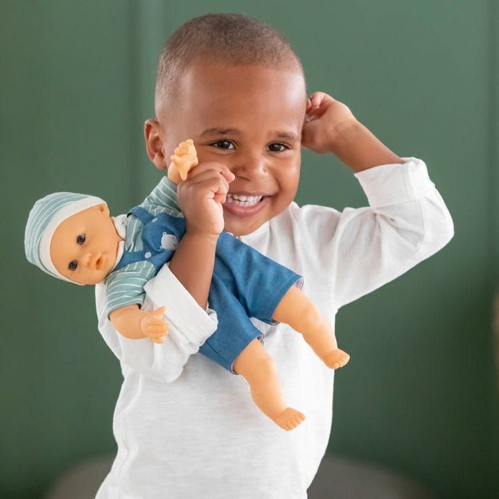 At 18 months, your child begins imitation games. A little doll is therefore the ideal toy to offer to support his development. Bébé Calin Maël can be easily handled by your child, because its size (12 inches) is perfectly suited to their little arms and hands. In addition, with its flexible body, this little doll can
