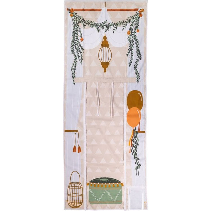The Boho Tea House Storefront is the perfect spot to gather with friends for a tea party they won't forget. This imaginative play shop is made from machine-washable poly-cotton canvas, is easy to hang, and takes up almost no space to inspire hours of creative play. Printed on both sides with two different shop scenes