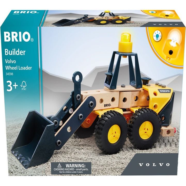Lift the largest loads with the Volvo Wheel Loader from BRIO Builder. Based on the iconic Volvo machine, this construction toy features realistic play functions like a tipping bucket as well as a battery warning light. Take hold of the easy-to-use tool and follow the assembly instructions to build this machine piece by