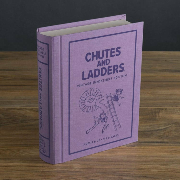 This vintage bookshelf edition of the classic CHUTES AND LADDERS® game is a terrific way for young children to learn about life’s ups and downs. They will get to climb the ladder of success to reward their good deeds, while having to slide down the chute as a consequence for naughty ones. The object of the game is to r