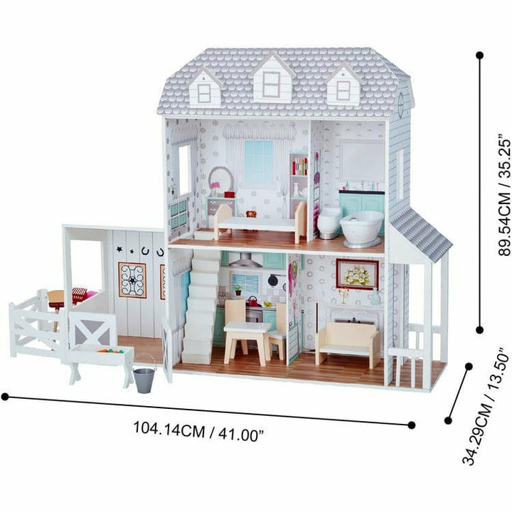 Dreamland Farm House Dollhouse – White / Grey