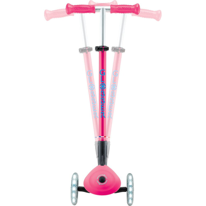 The most accessible Globber scooter—from price point to features—ELITE LIGHTS delivers the best value for your scooting kiddo. A 3-wheel scooter equipped with LED light-up wheels, a patented folding system, a 4-height adjustable T-bar, and a patented steering lock system, ELITE LIGHTS is packed with all the features yo