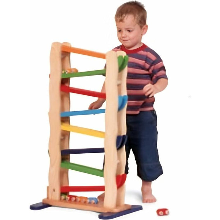 Watch your race cars flip over one another as they come racing down! Make Fast Flip Racetrack a part of your playroom race course. Which of the Race Cars do you think is the fastest Race them all and record the results! Ages 3+ Materials: WOOD, Steel Care instructions: Wipe with damp cloth, air dry; do not immerse in w
