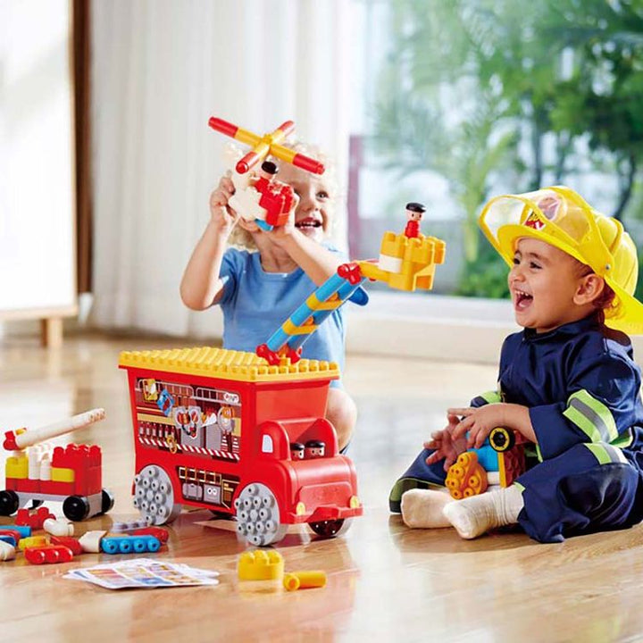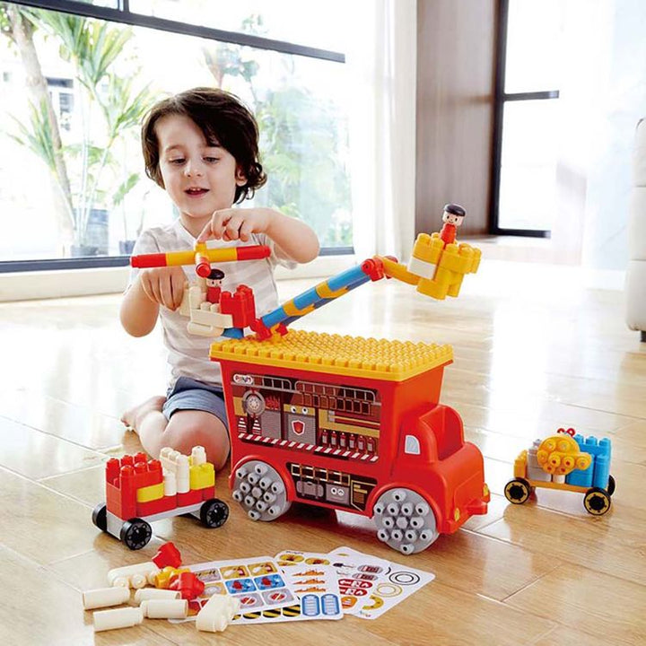 Learn about firefighting with this truck! Follow the inspiration leaflet to build a fire truck and various fire rescue vehicles to extinguish fire and save life. Easy maintenance and noiseless play make it perfect for your children. With 100 soft blocks included, this set is designed to enrich playtime while promoting