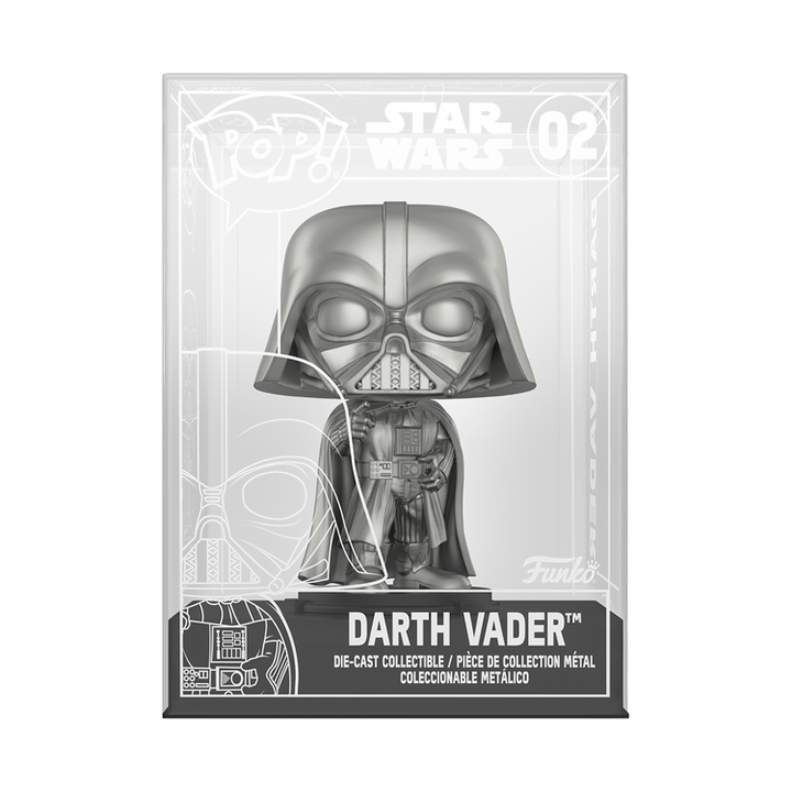 Behold! The new premiere Pop! figure, designed to be the front and center, top-shelf collectible, the Die-cast Pop! series. These figures come in die-cast acrylic cases featuring etched details and fasten to the base of the case. The case can be opened, and the figure detached from the base, but with a clear view of al