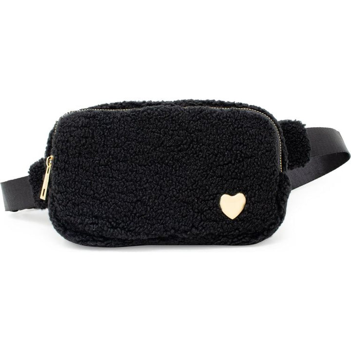 Fuzzy Belt Bag with Heart – Black