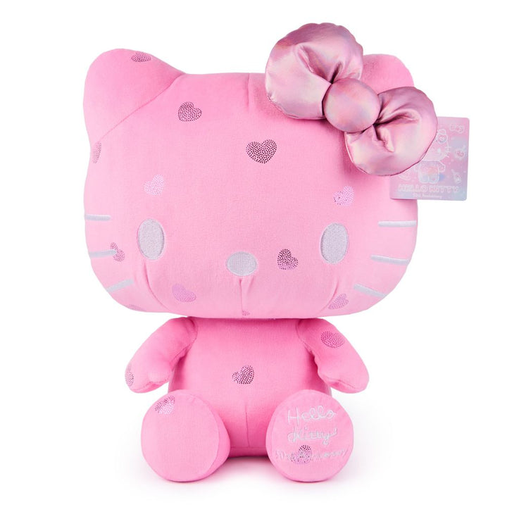 Celebrate 50 years of Hello Kitty with GUND! This cuddly, special-edition 12” plush shows the kawaii little girl from the world of Sanrio in all pink with special details sure to impress any collector and fan. Here Hello Kitty features soft, bubblegum-pink plush dotted with a sparkly metallic pink heart pattern. Her ic