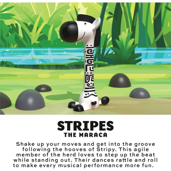 Introduce your toddler to the rhythmic world of music with the FAO Schwarz® Jungle Drum 5-Piece Instrument Set. Each instrument in this playful set is inspired by a different wild animal, making music time an exciting and educational jungle adventure. The set includes a drum (body and lid), a zebra-shaped maraca, a pea