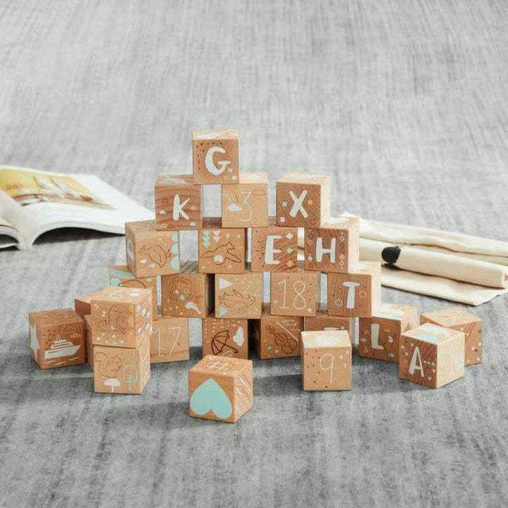 Features: Beech wood etched blocks designed by UK artist Lizzie MacKay, designed exclusively for Asweets. Set includes 27 blocks, includes all the letters of the alphabet, numbers 1-26, and one surprise block. Each block measures 1.75″ x 1.75″ x 1.75″ and etched and printed with non-toxic baby safe ink. This set comes