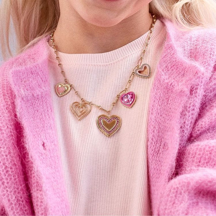 Introducing your little one’s new favorite necklace. The Sweetheart Kids’ Charm Necklace features a gold colored chain with five pink and gold heart charms. Playful and bright, it’s the perfect gift for your little fashionista. Charm necklace Heart motif charm necklace Length: 16" Weight: 0.93 oz. Material content: Gla