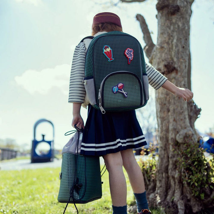 The Starter backpack is perfect for young students ages 3 to 6 yrs old. The bag fits a standard A4 folder when placed to the back of the bag. It does not fit a binder. These featherweight, ergonomic backpacks have sturdy form and structure making them comfortable and stylish! The line expands into sling bags, cosmetic