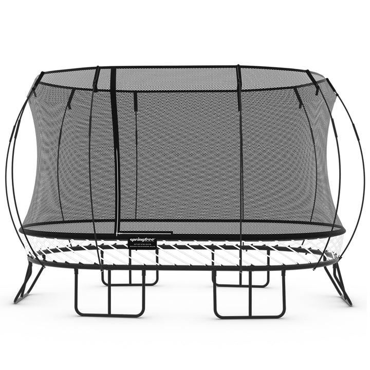 For kids of all ages with narrow yards. The large oval model is perfect for large families and kids of all ages, who love fitnessand activities, without taking up the whole backyard. This Large Oval Trampoline provides 92 squarefeet of jumping freedom. Max Weight Capacity: 1500lbs Single Jumper Weight Capacity: 220lbs
