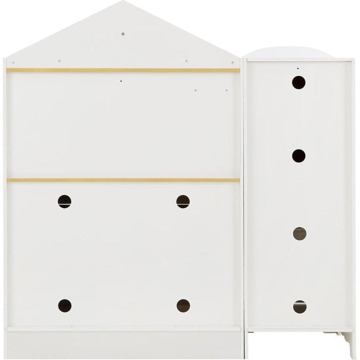 Teamson Kids Little Chef Morocco Play Kitchen features a freestanding refrigerator and a separate unit with oven, washer, microwave, and sink for endless configurations. The Moroccan-inspired blue, black & white tile backsplash and faux rattan oven, washer, and microwave doors are a stylish addition. Includes an in