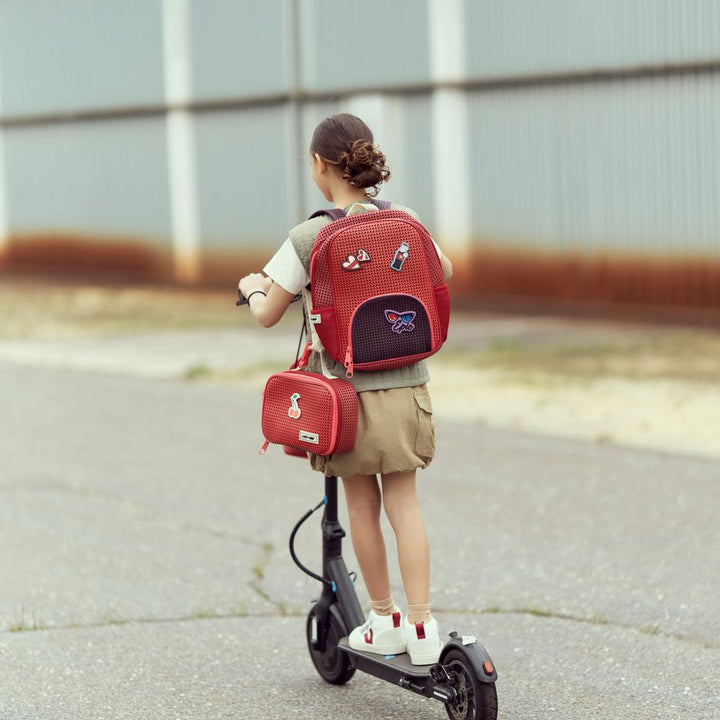 The insulated lunch tote keeps food hot or cold and is easy to carry with you to school. Insulated to keep food hot or cold Easy to carry handle Name tag Buckle to clip lunchbox onto your bag Fits most containers and bento boxes. Fits into all of our backpacks except the little miss Size: 10" W 7" H X 3.5" D + Contents