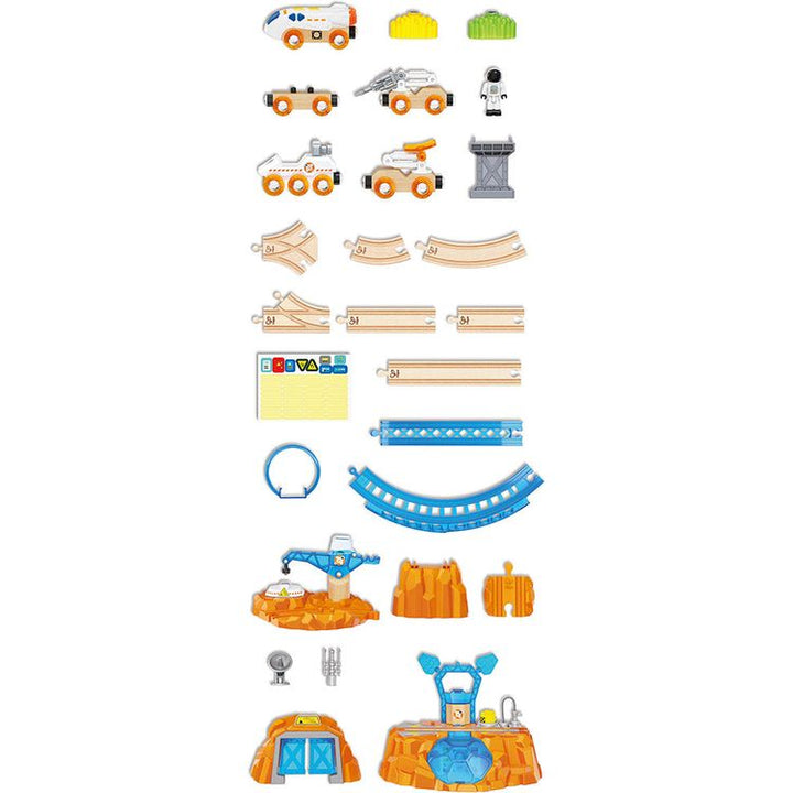 Blast off and join the interstellar fun with our Mars Exploration playset. This set merges railway and space exploration and features astronaut figurines, underground lab and other accessories for role play. With glow-in-the-dark stickers to customise their tracks, this set promotes problem-solving skills, creativity,