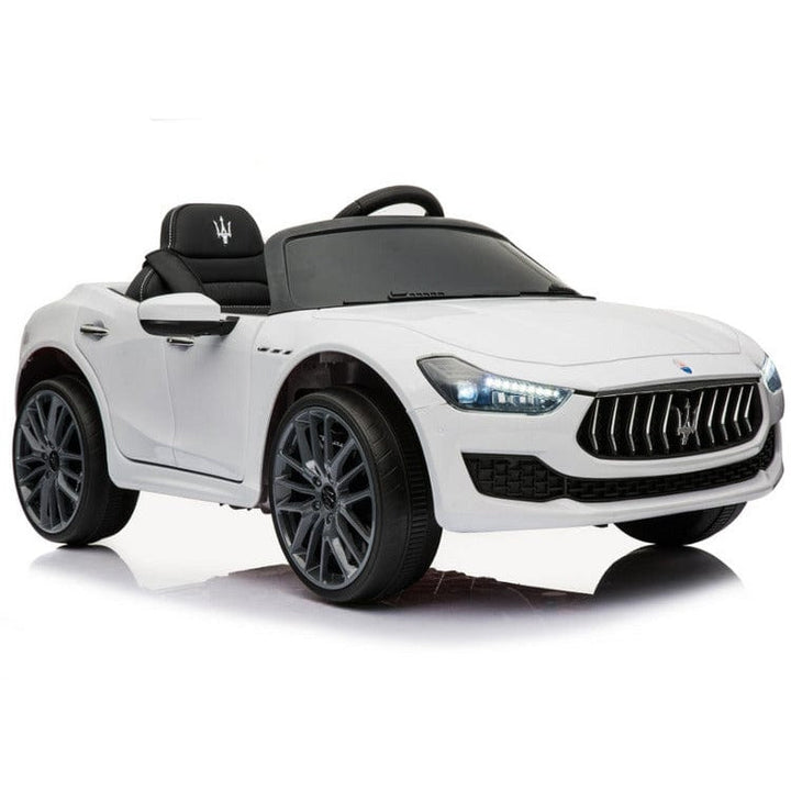 Maserati Ghibli 12v comes with upgraded 12v battery and motor Working LED lights, music and horn sounds, forward and reverse option, pre-loaded stories and poems, and safety belt option. Remote control access for convenience of parents. Best for ages 3 Years + PLEASE NOTE: This item does not qualify for free shipping.