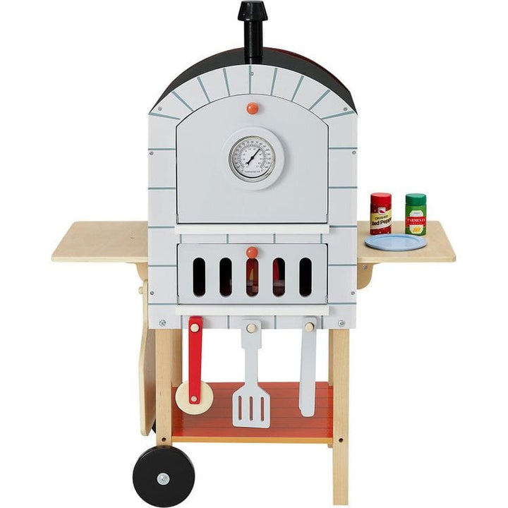 Teamson Kids' My Little Helper Pizza Oven rolls on two wheels and features sturdy legs once it's in place. Little chefs can create culinary masterpieces with three delicious-looking pretend toppings that stick easily thanks to hook & loop fasteners on the 4-slice pizza. Use the pizza board, spatula, pizza cutter, a