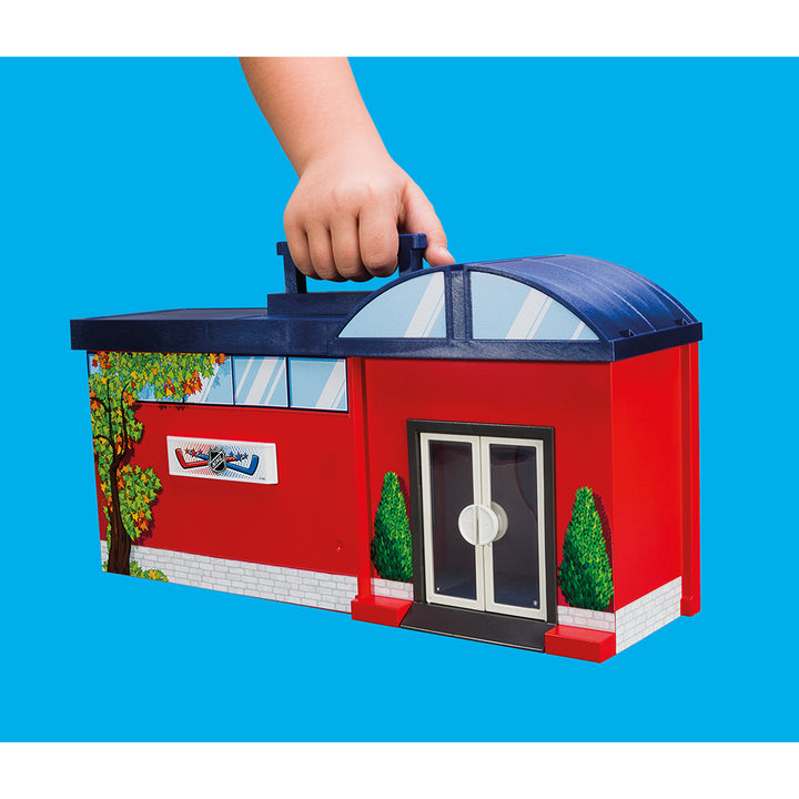 It’s game night at the NHL® Take Along Arena! Designed in a convenient take-along case, this set is perfect for on-the-go fun. Simply fold down the front panel to reveal an exciting hockey game. Players can get ready for the game in the locker room area, which also provides room to store all your hockey gear. Once the