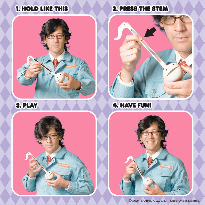 One of Japan’s Best-Selling Musical toys! This supercute new Hello Kitty® and Friends Otamatone features an officially licensed, exclusive Kuromi™ design! FUN & EASY TO PLAY ♡ Touch or slide your fingers along the stem to vary the pitch and squeeze the cheeks for vibrato. Play in a low, medium, or high pitch – get