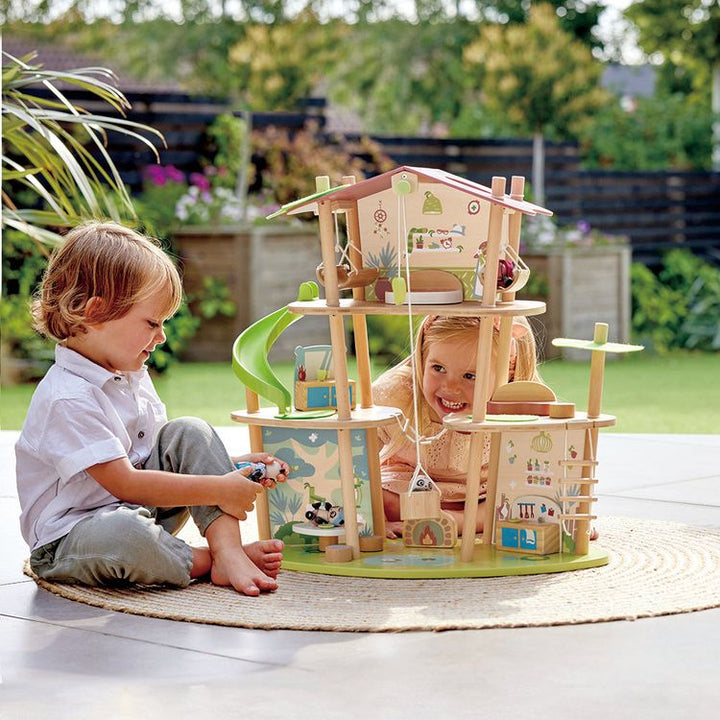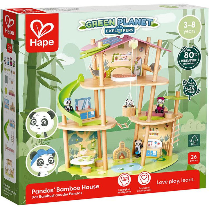 What’s even cuter than a play house? A panda play house! Let your little one explore their creative side with this adorable twist on the traditional play house from Hape. Sam, Pam and their panda family live in an eco-friendly bamboo house your child will explore for hours. The 3-level playset is complete with a full s