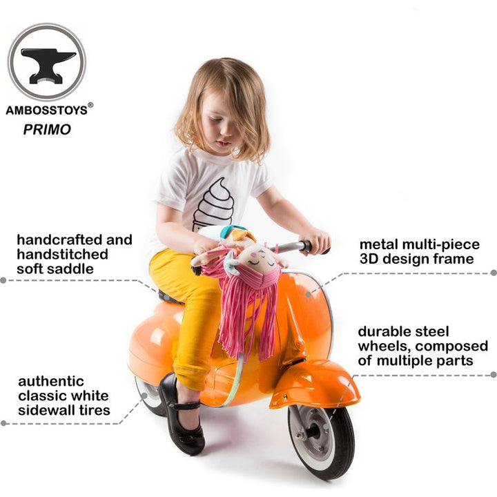 PRIMO is the ultimate toy, as our frame is built for longevity with only durable and high-quality materials. Safety and quality are our top priorities, making the self-propelled PRIMO ride-on scooter ideal for one year old up to 5 years old. Our frame consists of solid metal sheets, welded by hand out of several indivi