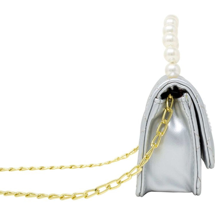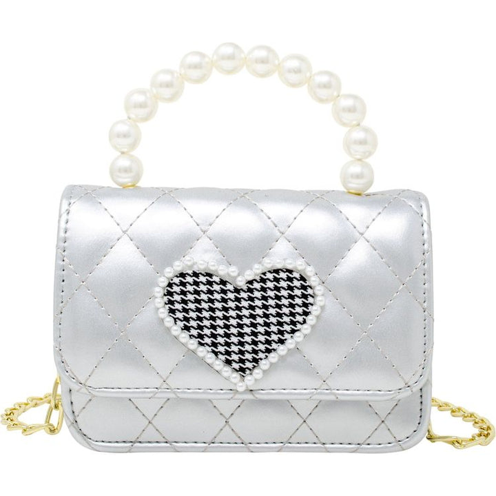 Quilted Pearl Handle Heart Bag – Silver
