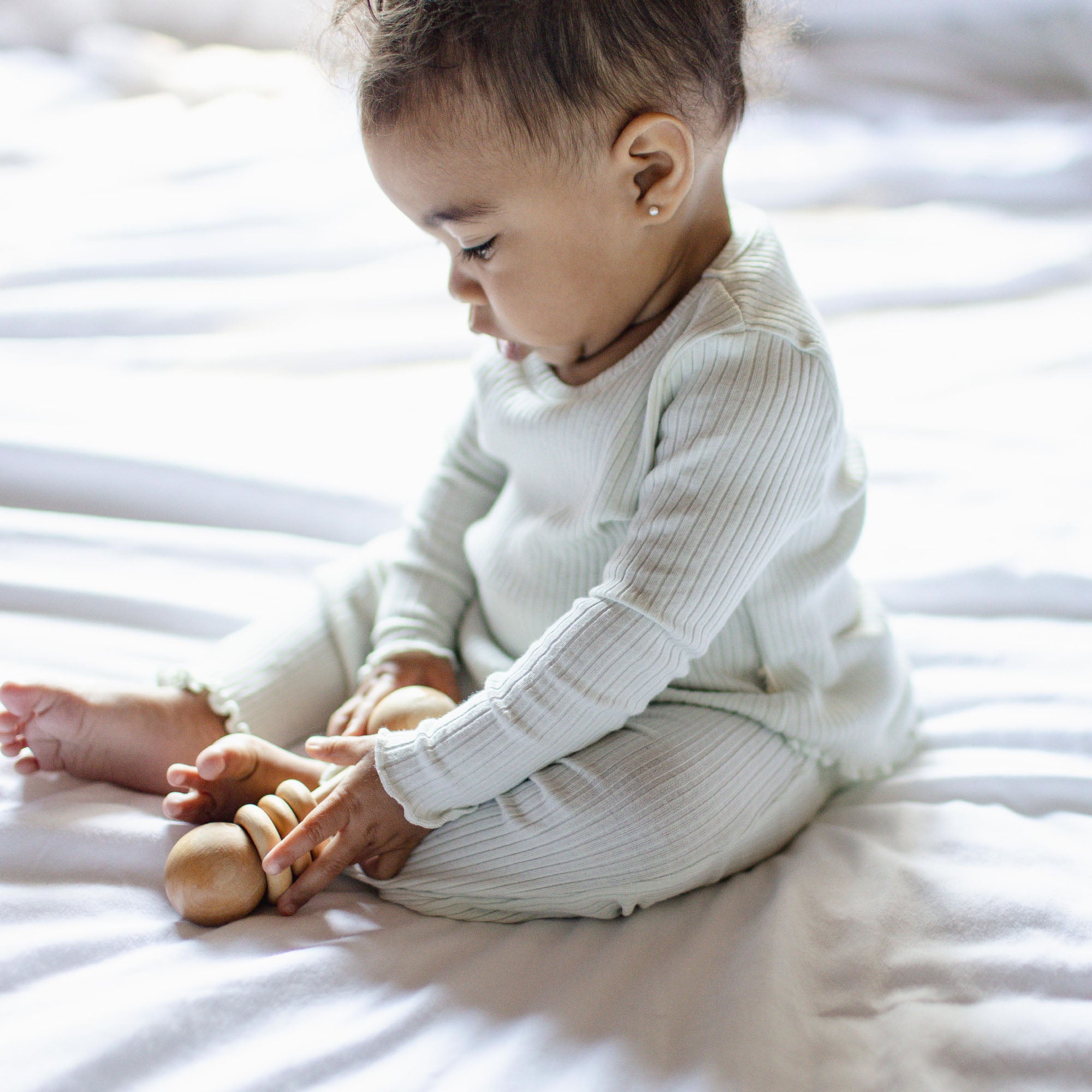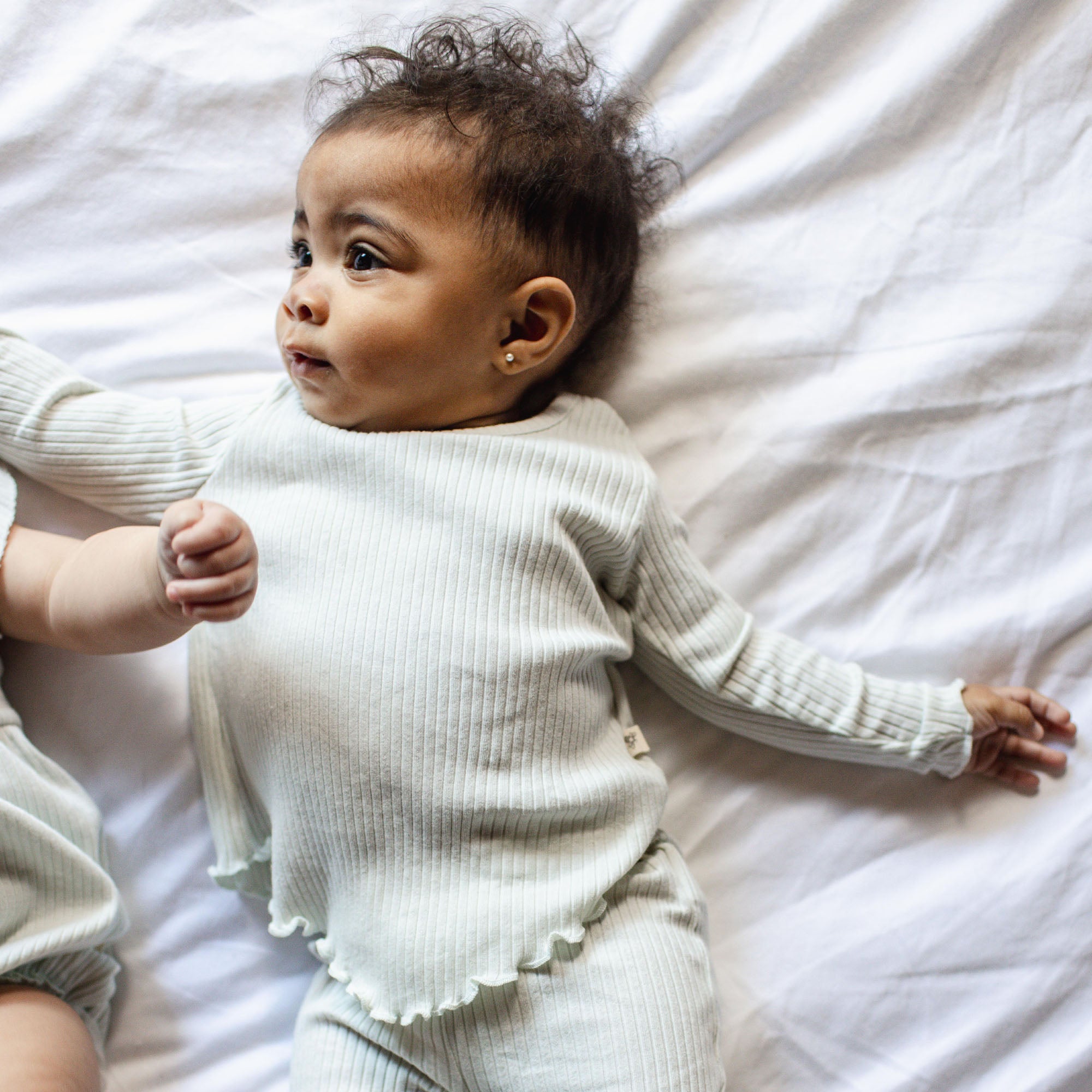 Elevate everyday comfort with this flared legging and long-sleeve tee set crafted in soft. stretchy rib cotton.