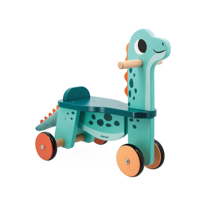 Watch out for the approaching Portosaurus! Go for long rides on this magnificent brachiosaurus. This ride-on toy is equipped with two directional wheels at the front to facilitate turning of all kinds. The wheels are equipped with silicon in order to be able to creep silently through the forest. The dinosaur's tail is
