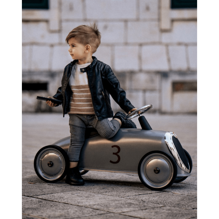 The Riders, the new XL ride-on car from Baghera! With its 90cm length and large wheels, this gorgeous car is for seasoned pilots! Strong, silent and very maneuverable, this large ride-on is all metal. A maxi ride-on for champions with big ambitions! A durable ride-on car with sleek, vintage design. Dimensions: 34" x 15