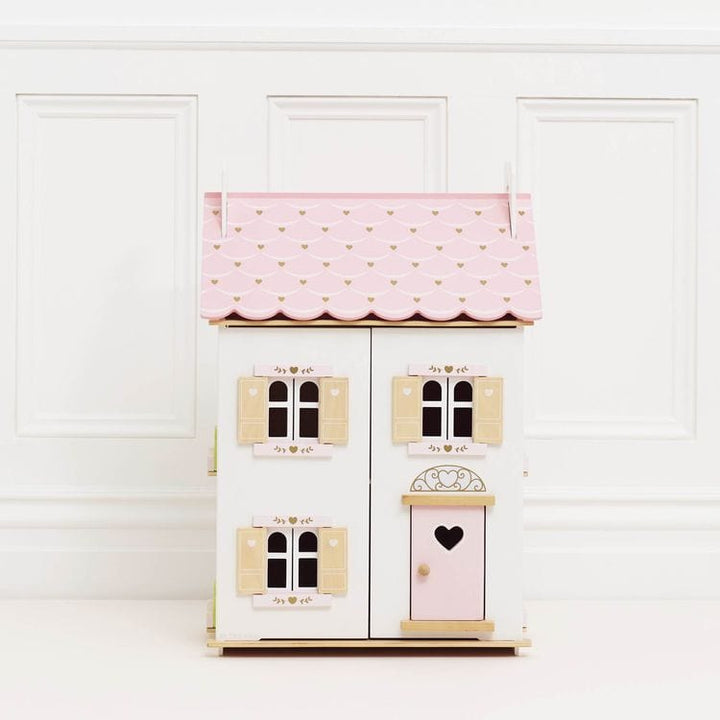 This delightful dolls house makes a stunning gift, painted in fresh white and pink hues with gold heart motifs. Crafted from sustainable FSCâ„¢ – certified wood, if features stunning detailing and interactive elements for immersive play.  Perfectly scaled to fit our full range of dolls and accessories (sold separately).