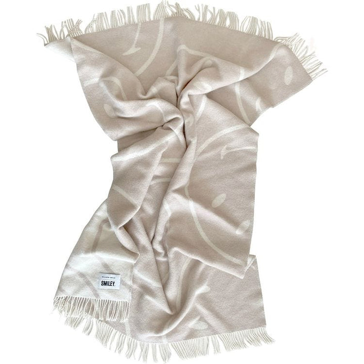 The Smiley Blanket is a thick premium reversable blanket with fringes on the short sides. It's certified with the Woolmark and OEKO-TEX label. Dimensions: 4.25 x 6.5 ft 100% New Zealand Wool Jacquard-woven 100% Renewable & Biodegradable Dry clean PLEASE NOTE: This item does not qualify for free shipping. There is