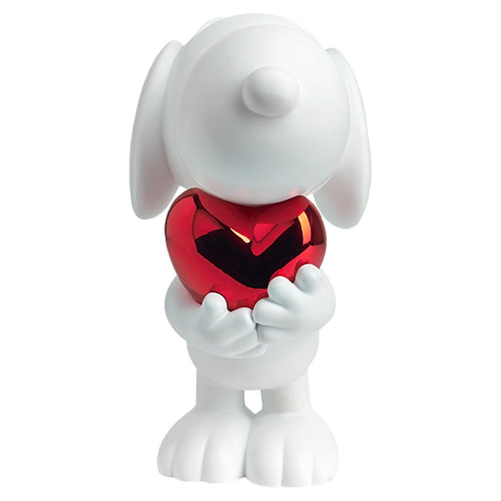 Add a touch of tenderness to your decor with this adorable figurine of Snoopy, the iconic dreaming beagle. This resin figurine is a tribute to love and friendship, showcasing the chromed heart that Snoopy holds close to him. This creation perfectly captures the joyful and playful spirit of Snoopy while adding a romanti