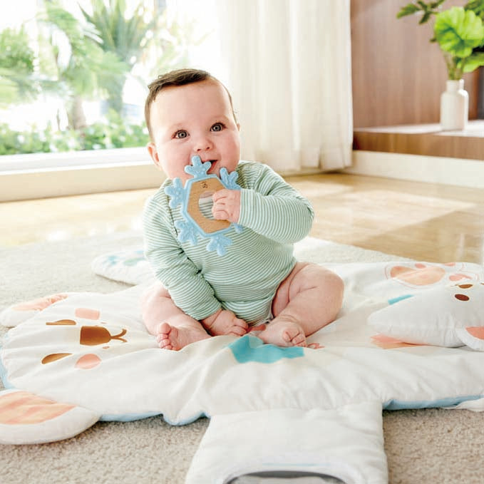 Explore sensory delights with our activity gym. It boasts a soft mirror and customizable cards for budding learners. Additionally, cherish the tummy bear pillow, interactive hanging toys, and crinkly features for comprehensive playtime happiness. Item Weight: 4.85 lbs Product Dimensions (L x W x H): 28.7 x 20.8 x 34.25