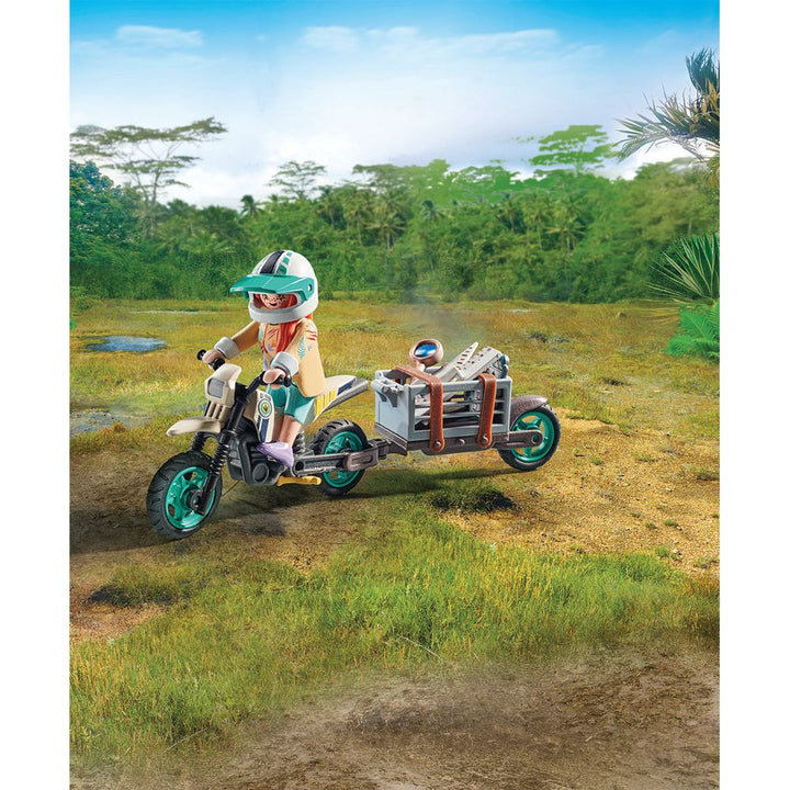 Experience extra-large dino fun with the T-Rex Hunt. The researcher embarks on an exciting quest to uncover traces of the Tyrannosaurus Rex. AS she journeys through the jungle on her motorcycle, she discovers bone fragments and a gigantic footprint. But when the original T-Rex suddenly appears before, the adventure rea