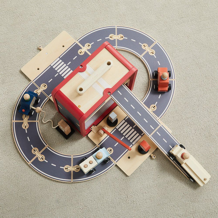 Your kiddos will love our Take with Me Garage. It comes with 12 wooden pieces including cars, trucks, peg people, ramps, signs, charging station and much more. But the best part is kids can pack up all the pieces into the carry along garage and go anywhere. Perfect for car rides, plane rides, or just quiet imaginary