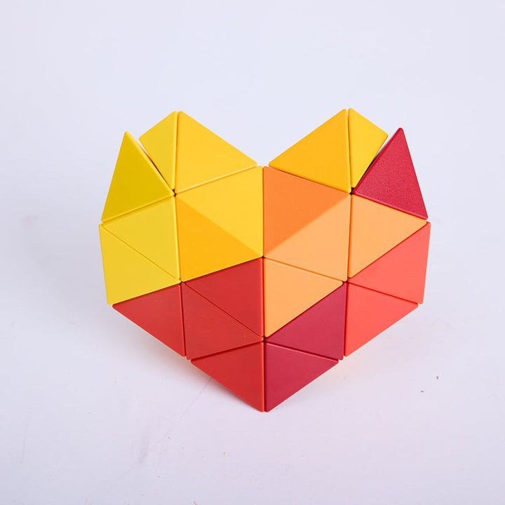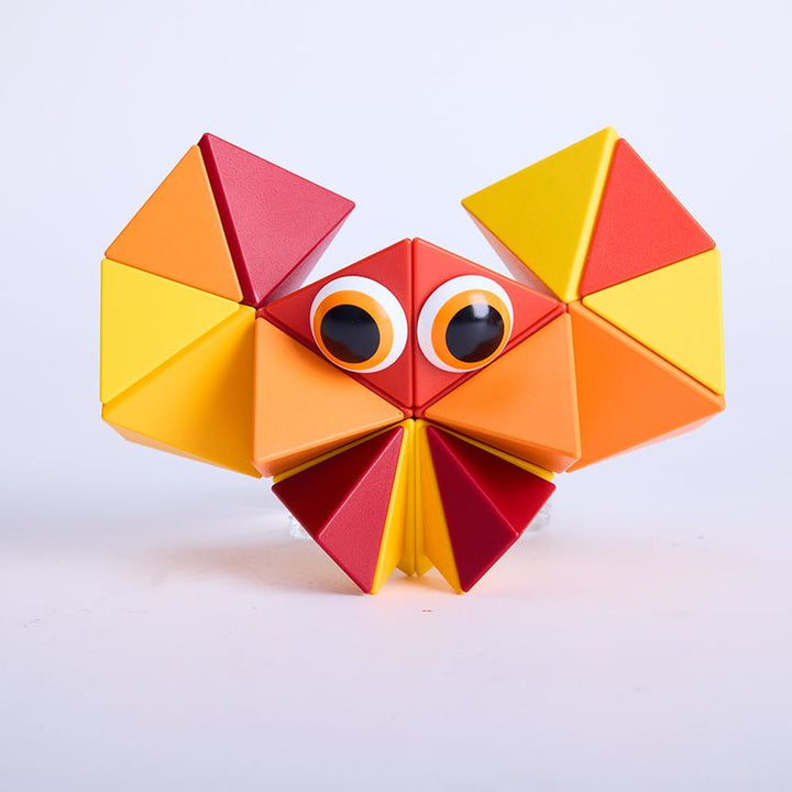 Sunrise Large set, the red, dare to shine bright like the morning sky with Sunrise. First of its kind in 3D magnetic play, the 36-Pieces Set includes: 6 octahedrons, 12 tetrahedrons, 12 half-tetrahedrons, 6 eyes (in total 36 pieces) + Leaflet + Limited Edition "Inspiration Book" With a large set you can either build on