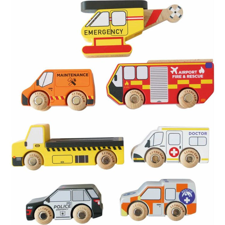 Wooden Set of 7 Emergency Vehicles