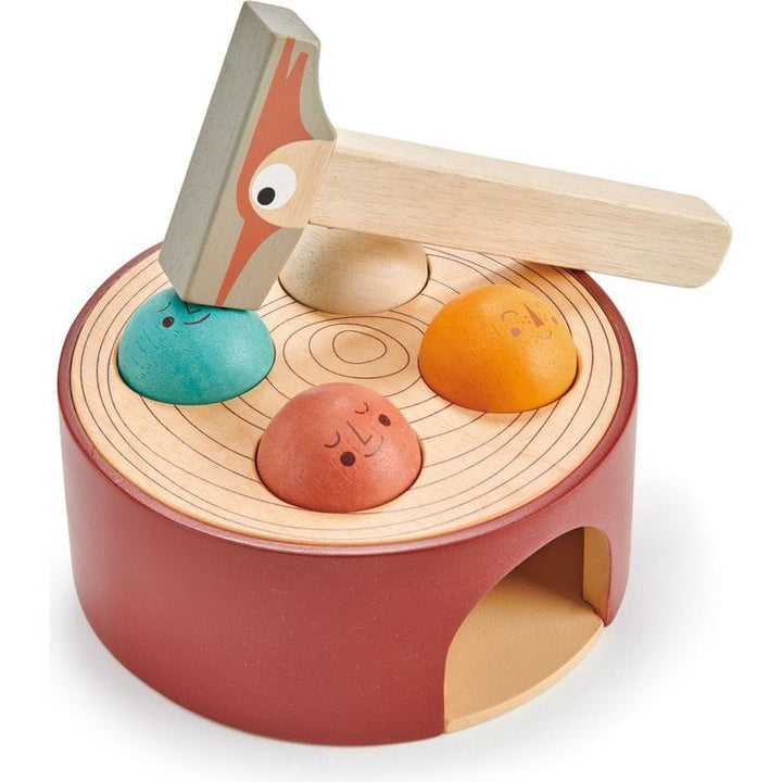 A stylish hammer game for active toddlers who love to bash things. Based on a tree trunk, bash the four balls with a woodpecker styled hammer. Collect the balls as they fall through the hole and repeat. CLASSIC HAMMER TOY: Tender Leaf Toys Woodpecker game toy set with a beautiful hammer is a classic pounding toy based